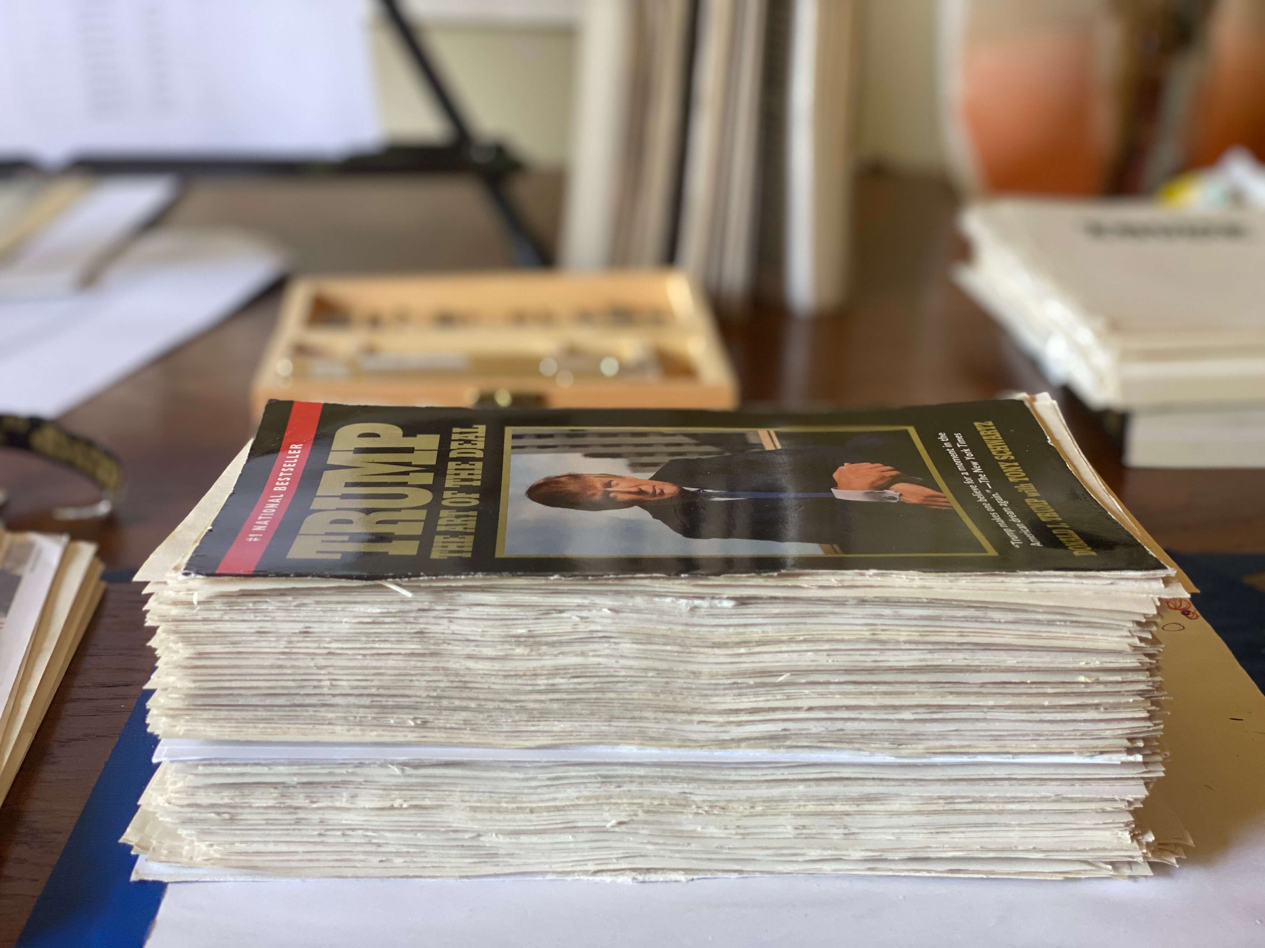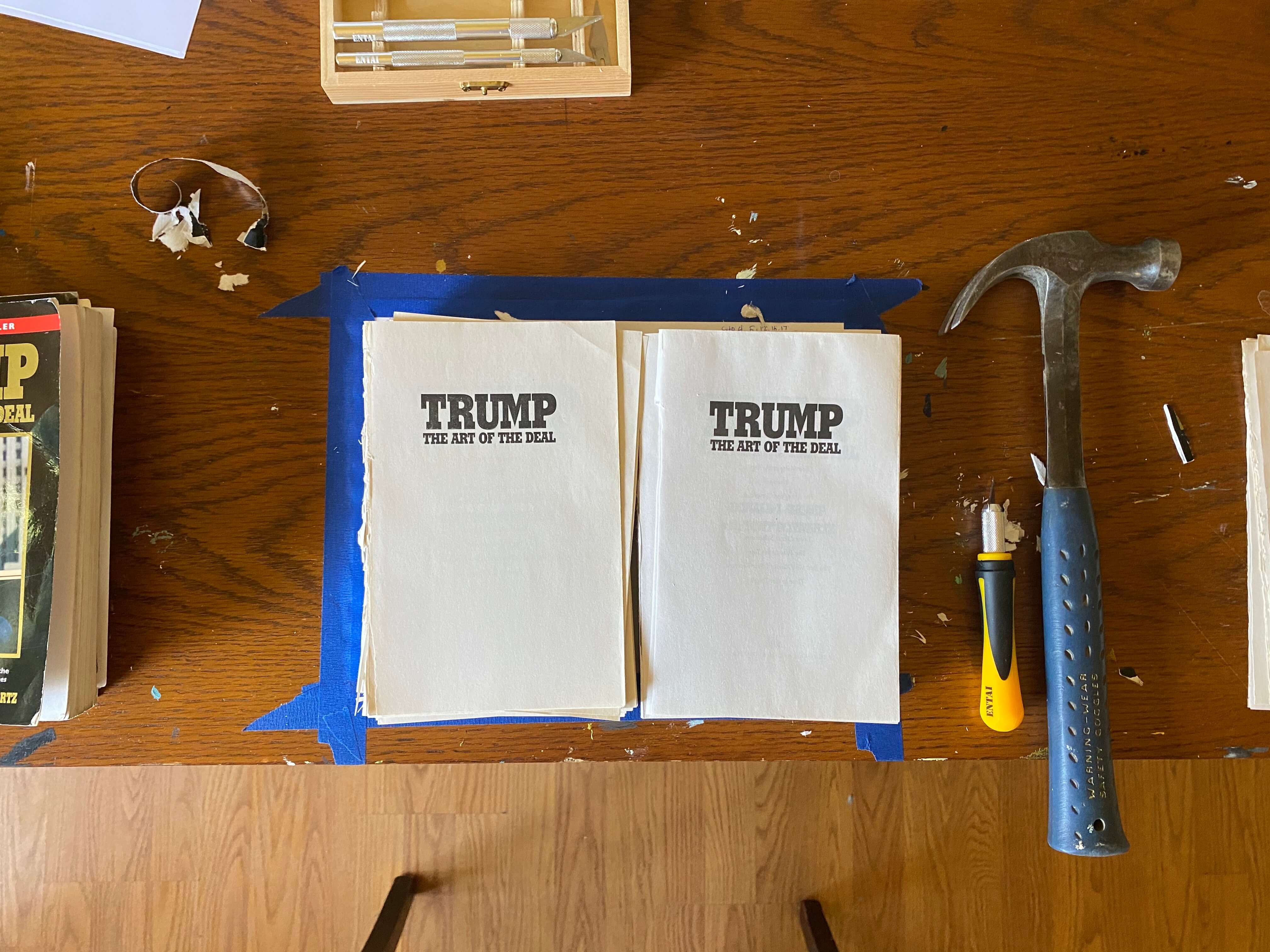 Removing the spine from two soft cover copies to create a loose leaf version of The Art of the Death.